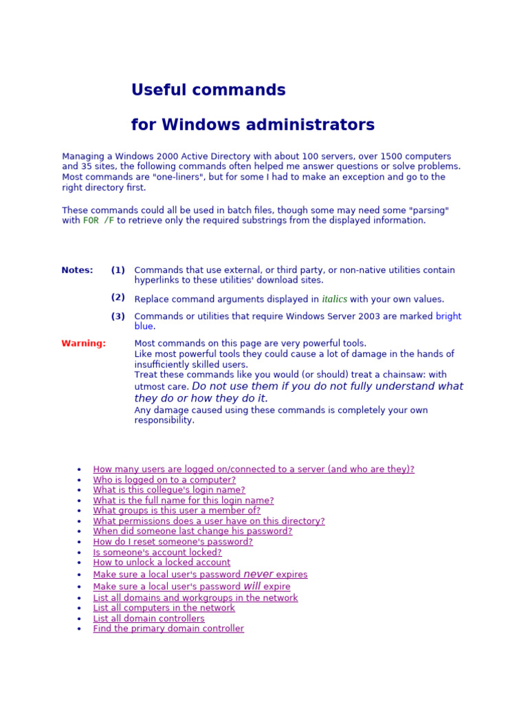 Warning: Most commands on this page are very powerful tools.