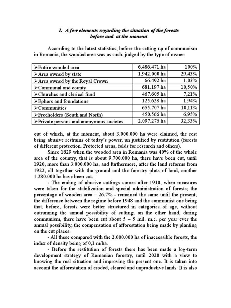 in Romania, the wooded area was as such, judged by the type of owner: