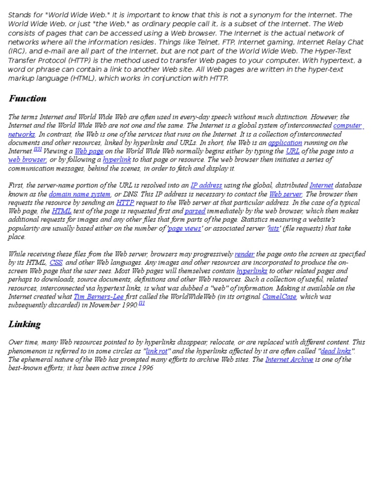 (IRC), and e-mail are all part of the Internet, but are not part of the World Wide Web. The Hyper-Text