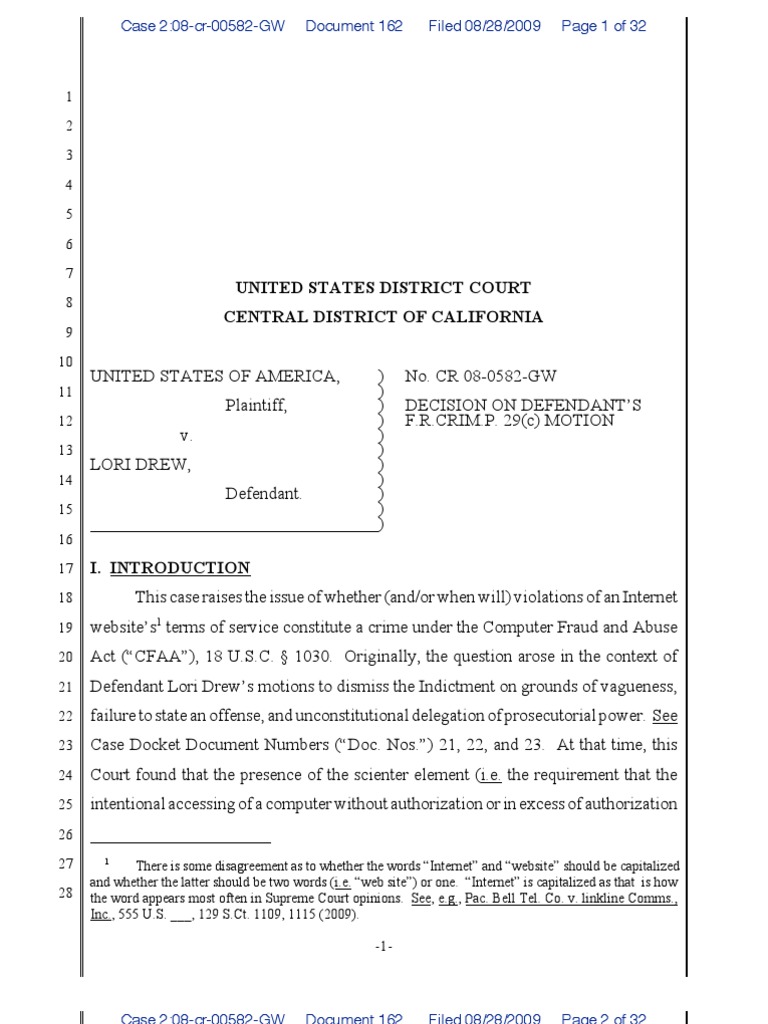 Case 2:08-cr-00582-GW Document 162 Filed 08/28/2009 Page 2 of 32