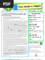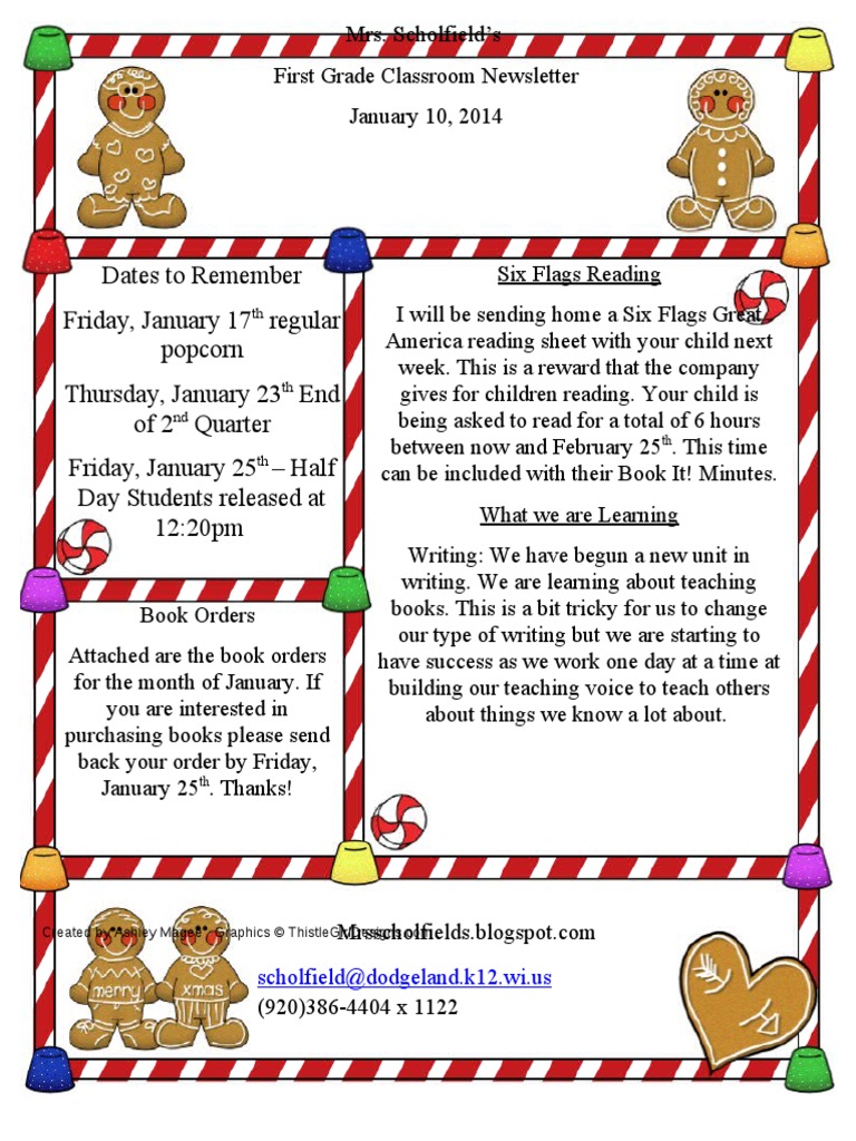 Scholfields First Grade Classroom Newsletter January 10, 201