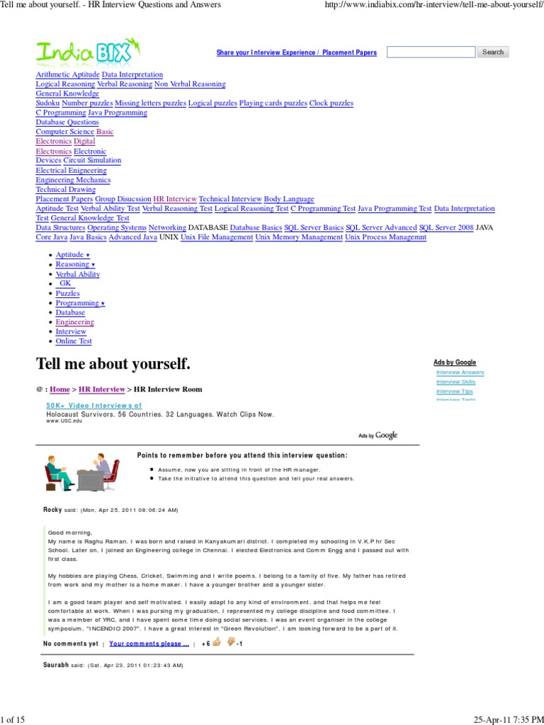 1.tell Me About Yourself. - HR Interview Questions and Answers
