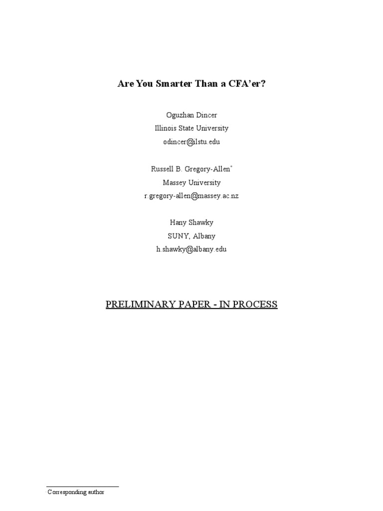 The research in this area has taken primarily two forms: 1) Do CFA’s add value? and 2) Do