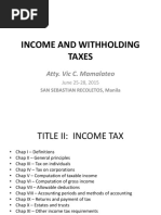 This Reviewer covers the study of the law on Income Taxation which includes: 1. Title II of the National Internal Revenue Code (NIRC) 2. Statutes related or amending the NIRC 3. Related Revenue Regulations, BIR Rulings and other administrative issuances 4. Cases decided by the Supreme Court As a complement to this reviewer, I suggest you get any book containing the complete codal provisions of the NIRC (either the green codal from Rex Bookstore or the NIRC annotated codal by Casasola and Bernaldo. As for reference books, I would recommend Income Taxation by Mamalateo or Tax Law and Jurisprudence by Vitug and Acosta. As Albert Einstein puts it, the hardest thing in the world to understand is the income tax. May this reviewer serve its purpose in helping us in our efforts in overcoming this challenge and achieve excellence. Yours in Honor and Excellence, Pierre Martin DL Reyes