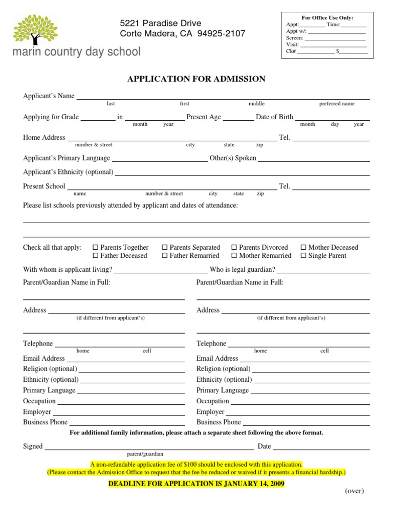marin country day school Ck# _____________ $__________