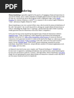 'tructured transaction-!ttempt to evade cash or other reporting re(uirements by a composite of small transactions or by other devices. 'u#stitute property-3f funds or assets are transferred out of 1.". 'urisdiction by a suspected launderer, #in*E6 may obtain a subpoena to sei<e property of e(uivalent value from the suspected launderer. 'uspicion-doubt based on some foundation e>tending beyond speculation but not necessarily sufficient to constitute a belief. 'uspicious Activity-relates to funds from illegal activity, hiding the source of funds, or circumventing reporting re(uirements or activity inconsistent with a customerCs business or industry practice. 'uspicious Activity /eport-("!2 2eport filed with #in*E6 to report suspected money laundering activity. #inancial institutions are re(uired to file "!2Cs within 80 days of detection of suspicious activity if the suspect is known, D0 days if not known. %ealers in precious metals and stones are not re(uired to file "!2Cs but are encouraged to do so. 'uspicious Transaction /eport-("T2 Term used in Europe and by the #!T# for "uspicious !ctivity 2eport. Terrorist financing-#unding sources and infrastructure used by terrorist groups. *haracteri<ed by hiding sources and divorcing them from the terrorist activity they support. "tate-supported fincing is becoming less common. Much activity is through charities. "muggling, kidnapping, credit card fraud and other illegal activities are also used. Title ...-Fnown formally as the 3nternational Money $aundering !batement and !nti-Terrorism !ct of 500-. 2efers to the anti-money laundering portion of the 1"! )atriot !ct of 500-. Treasury 0epartment-!nti-money laundering responsibility and decision-making authority rests with the "ecretary of the Treasury. Treasury is the center of the 1.". anti-money laundering effort. )olicymakers at the Treasury make all substantive policy decisions involved in rulemaking. The rules are developed with input from all interested parts of the #ederal ,overnment enforcement and coordination are centrali<ed at the Treasury %epartment. Typology-! term used by the #!T# to describe money laundering and terrorist finance methods and techni(ues. 4.!. 'ecurity Council /esolution 7>?> (500- -2e(uires members to free<e terrorist assets and calls for members to assist one another in investigations and to not support terrorist acts or provide safe havens. 4'A (AT/.,T ACT -as an acronym, stands for "1niting and "trengthening !merica by providing !ppropriate Tools 2e(uired to 3ntercept and 4bstruct Terrorism" (4ctober 5@, 500@ienna Convention-Made money laundering an international offense in -.77 for which signatories agreed to e>tradition. Aillful #lindness-%eliberate avoidance of knowledge of the facts. )ermitting illegal activity knowing it was taking place. The standard of what constitutes knowledge is a legal definition. 3n the 1", this generally means knowing or suspecting. The fringe (uestion is whether a party should have known, given the facts or circumstances, or whether knowledge was deliberately