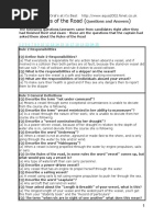 (a) That everybody is responsible for any action taken aboard a vessel, and if involved in a collision then both parties are at fault, because the stand-on vessel did not use rule 7 risk of collision and rule 8 Action to avoid collision. (Q) What is the responsibilities of a skipper on the vessel? (a) To make sure the vessel is a safe and healthy working environment (Q) What are the responsibilities of individuals aboard your vessel? (a) To make sure their health is good and if they see any dangers then to report them to the skipper