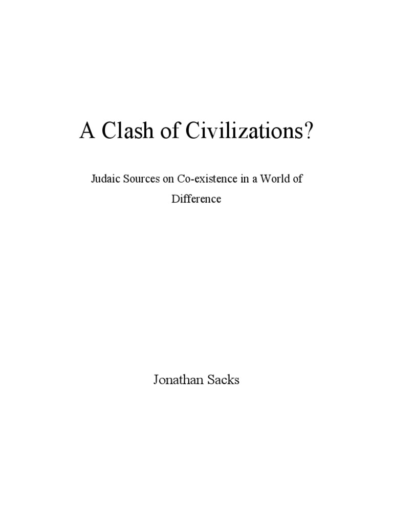 A Clash of Civilizations?: Judaic Sources on Co-existence in a World of Difference