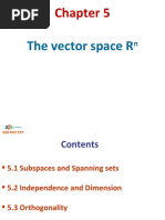 We dene orthogonality of vectors in a vector space using what is called an inner product; Denition. An inner product on a vector space V is a function u, v that takes the pair of vectors u and v and returns a scalar; to be called an inner product, the function must satisfy the following: if u, v , and w are vectors in V and c is a scalar, then a) u, v = v , u ; b) u, v + w = u, v + u, w ; c) cu, v = c u, v ; d) u, u 0; u, u = 0 if and only if u = 0. The most common example of an inner product is the dot product dened on Rn ; this is also sometimes called the Euclidean inner product. It is usually written u v = uT v . Notice that uT v amounts to multiplying the corresponding entries of u and v and adding all of the products together. An inner product on a vector space allows us to dene things like the length of a vector, the distance between two vectors, and the angle between two vectors, which will behave in many ways like we would hope.. Denition. We dene the length of a vector v in terms of an inner product by |v | =