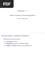 We have a few vector subspaces that arise from an m n matrix A that are useful enough to have special names: Denition. The null space of an m n matrix A is the set of solutions to the homogeneous equations Ax = 0; it contains the vectors x that are solutions to this equation and so is a subspace of Rn . We nd a basis for the null space of A using the following method: i) Reduce A to its reduced echelon form; ii) Identify the free variables; if there are no free variables, we can consider the empty set to be the basis for the null space; iii) Set the r free variables equal to parameters t1 , . . ., tr and solve for the remaining variables in terms of these parameters; iv) Let vj be the vector obtained by setting tj = 1 and all of the other parameters equal to zero. Then {v1 , . . . , vr } is a basis for the null space of A, which has dimension r. Denition. The column space of an m n matrix A is the subspace spanned by the columns of A; it is a subspace of Rm . It can also be thought of as the set of vectors y that can be written Ax = y for some choice of x. To nd a basis for the column space of A, we use the fact that the columns of A are a spanning set for the column space; we can use the method introduced in the previous section to reduce this spanning set to a basis. Denition. The dimension of the column space of A is called the rank of A. Notice that the leading entries correspond to columns that are used as a basis for the column space, while the columns without leading entries correspond to free variables; thus we have the following theorem: Theorem. If A is an m n matrix, then we have that dim (null A) + rank A = n. Denition. The row space of an m n matrix A is the subspace spanned by the rows of A; it is a subspace of Rn , and can be thought of as the column space of AT . We nd a basis for the row space by transposing A and nding a basis for the column space of AT .