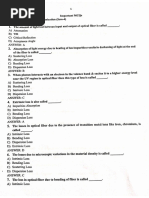 The normalized refractive index difference = (n1 n2)/n1 = (1.474 1.453)/1.474 = 0.01425 Modal dispersion for 1 km of graded index fiber is Ln1 2 (1000)(1.474) 2 intermode = 8 (0.01425) 20 3(3 10 ) 20 3c = 2.910-11 s or 0.029 ns The material dispersion (FWHM) is m (1 / 2) = LDm 1/ 2 = (1000 m)( 5 ps ns 1 km 1 )(3 nm) = 0.015 ns Assuming a Gaussian output light pulse shape, rms material dispersion is,