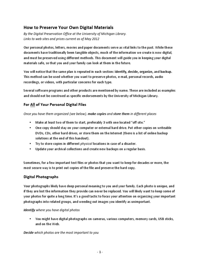 and musL be preserved uslng dlfferenL meLhods. 1hls documenL wlll gulde you ln keeplng your dlglLal