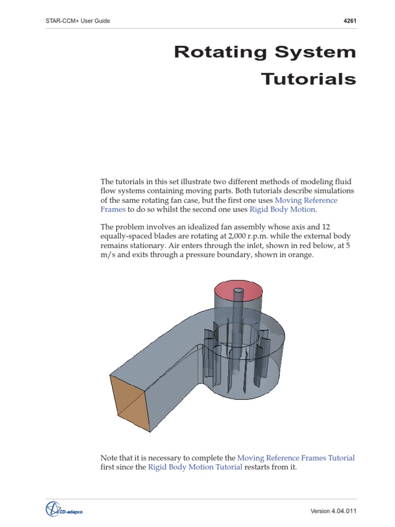 Note that it is necessary to complete the Moving Reference Frames Tutorial first since the Rigid Body Motion Tutorial restarts from it.