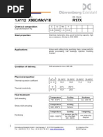 Chemical composition according to DIN (%) C Si Mn P 0.33-0.45 < 1.00 < 1.5 < 0.040 * For long products or products to be machined, S < 0.030 % Density r [kgm-3] 7'700 S < 0.015* Cr 15.5-17.5 Mo 0.80-1.30 Ni < 1.00