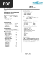 Physical properties Electrical resistivity r [Wm] 0.8 Coefficient of thermal expansion Specific heat Cp [Jkg-1K-1] 430 Thermal conductivity l [Wm-1K-1] 15 Elastic modulus E [GPa] 220 at 20C 196 at 400C Elongation A5 [%] 12 3 8 12 - 15 Vickers Hardness [HV] 215 - 275 540 520 245 - 290 Cooling Very slow Quench (water, oil) Air Air
