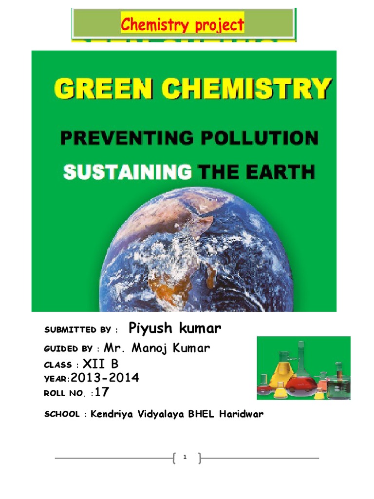 One of the most imp ortant new asp ects of chemistry is the dev elopment of GreenChemistry. Supported by the American Chemical Society, the USEPA and oth er Federal agencies, Green Chemistry has emerged as an important aspect of al l chemistry. Green Chemistry is the design of chemical products and processes that reduce oreliminate the use and generation of hazardous substances. Green Chemistry is based on Twelve Principles