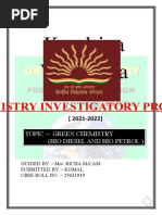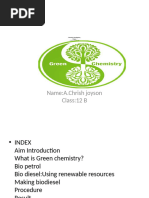 The Objective of this project is to study GREEN CHEMISTRYBio diesel and Bio petrol and how the extraction process of Bio diesel can be done.