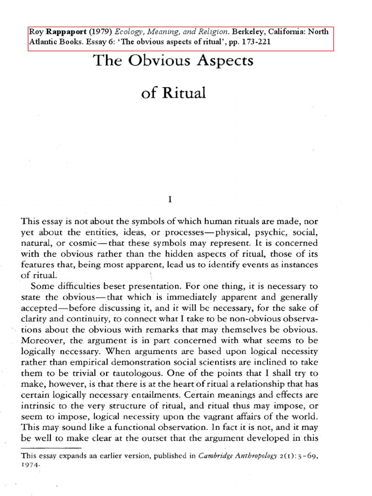 Rappaport Obvious Aspects of Ritual