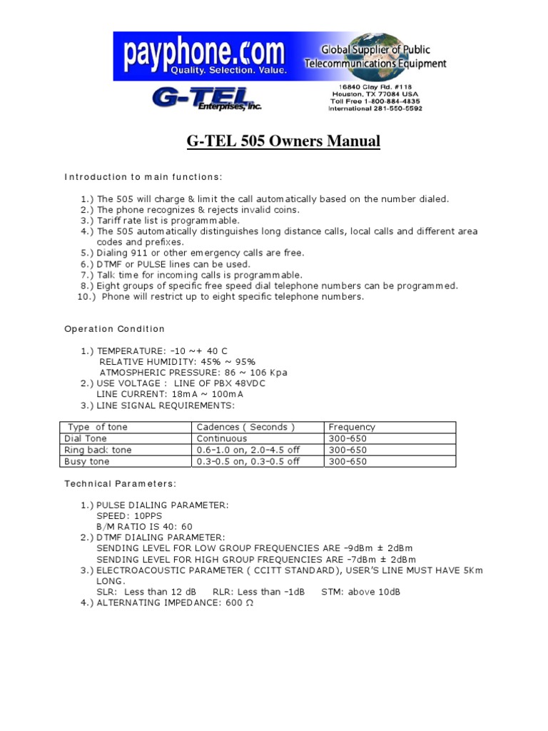 3.) ELECTROACOUSTIC PARAMETER ( CCITT STANDARD), USER’S LINE MUST HAVE 5Km