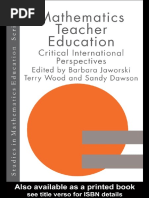 Wadham College. She carries out research in developmental psychology. Her primary interest is mathematical development, especially individual differences in arithmetic, and interventions for children with difculties in arithmetic. She has devised, and is piloting, the Numeracy Recovery intervention scheme (currently funded by the Esme Fairbairn Charitable Trust) in collaboration with seven Oxford primary schools. She is co-editor with Arthur Baroody of The Development of Arithmetic Concepts and Skills (Erlbaum, 2002). Cathy Hamilton is a principal lecturer at Bath Spa University College where she has worked in primary mathematics education for about six years. She works within the primary mathematics team and also has responsibility for the PGCE Primary Programme. Before that she was a deputy head teacher and SENCO in a primary school. She is interested in mathematics-specic research but also in more generic issues to do with education and, in particular, Initial Teacher Training policy and practice. Tony Harries is a lecturer in mathematics education at the School of Education at Durham University. He has taught in both primary and secondary schools in the UK and in Bangladesh. After teaching for eight years at Bath Spa University College he moved to Durham in 1999. His main interests at present focus on the use of computer environments to explore young childrens facility to represent numbers and number operations. In addition he is involved in developing links between Durham University and educational institutions in Southern Africa. Jenny Houssart has worked in primary schools, advisory work and in teacher education. She writes regularly for the Times Educational Supplement and is currently a research fellow at the Centre for Mathematics Education, Open University. Her main research at the moment is carried out in bottom mathematics sets in primary schools. Other research interests include mathematical tasks and early algebra. She is the author of Low Attainers in Primary Mathematics (Routledge Falmer, 2004). Rosalyn Hyde now works in teacher training and curriculum development following ten years in school as a secondary mathematics teacher. She works part time for the Mathematical Association as their Professional Development Ofcer and also at the University of Southampton where she is part of the secondary mathematics PGCE team. As part of her work for the Mathematical Association she coordinates T3 (Teachers Teaching with Technology) for England and Wales. This is a programme offering professional development and support for teachers in using graphics calculators and data-loggers to enhance the teaching and learning of mathematics. She is also a visiting research fellow at University College Chichester. Mike Ollerton began teaching in 1971. Between 1986 and 1995 he was head of mathematics at a school in Telford and here, alongside colleagues, he was responsible for devising problem-solving based schemes of work to support teaching and learning in mixed-ability groups across the 1116 age range. Since 1995 he has worked at St Martins College, Lancaster, teaching mainly on PGCE and MA courses. He carries out a signicant amount of in-service work, focusing in particular on issues of inclusion and teaching mathematics using accessible, problem-solving approaches without using textbooks or published schemes. He is author of Learning Teaching Mathematics Without a Textbook (Association of Teachers of Mathematics, 2002). Pat Perks works as a lecturer in mathematics education at the University of Birmingham. Before joining the university she worked as a teacher, head of department and