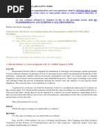 A: The objection should be overruled. What the law prohibits is the overhearing, intercepting, and recording of private communications. Since the exchange of heated words was not private, its videotape recording was not prohibited. (Navarro v. Court of Appeals) 2001 (XII) Q: "A" has a telephone line with an extension. One day, "A" was talking to "B" over the telephone. "A" conspired with his friend "C", who was at the end of the extension line listening to "A's" telephone conversation with "B" in order to overhear and tape-record the conversation wherein "B" confidentially admitted that with evident premeditation, he (B) killed "D" for having cheated him in their business partnership. "B" was not aware that the telephone conversation was being tape-recorded. In the criminal case against "B" for murder, is the tape-recorded conversation containing his admission admissible in evidence? Why? A: The tape-recorded conversation is not admissible in evidence. As held in Salcedo-Ortanez vs. Court of Appeals. Republic Act No. 4200 [Anti-Wiretapping Act] makes the tape-recording of a telephone conversation done without the authorization of all the parties to the conversation, inadmissible in evidence. In addition, the taping of the conversation violated the guarantee of privacy of communications enunciated in Section 3, Article III of the Constitution. 1998 (VII) Q: The police had suspicions that Juan Samson, member of the subversive New Proletarian Army, was using the mail for propaganda purposes in gaining new adherents to its cause. The Chief of Police of Bantolan, Lanao del Sur ordered the Postmaster of the town to intercept and open all mail addressed to and coming from Juan Samson in the interest of the national security. Was the order of the Chief of Police valid? A: No, the order of the Chief of Police is not valid, because there is no law which authorizes him to order the Postmaster to open the letters addressed to and coming from Juan Samson. An official in the Executive Department cannot interfere with the privacy of correspondence and communication in the