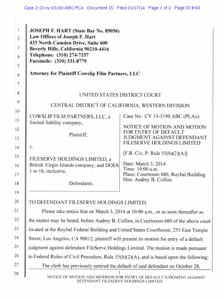 Case 2:13-cv-03190-ABC-PLA Document 15 Filed 01/17/14 Page 2 of 2 Page ID #:61