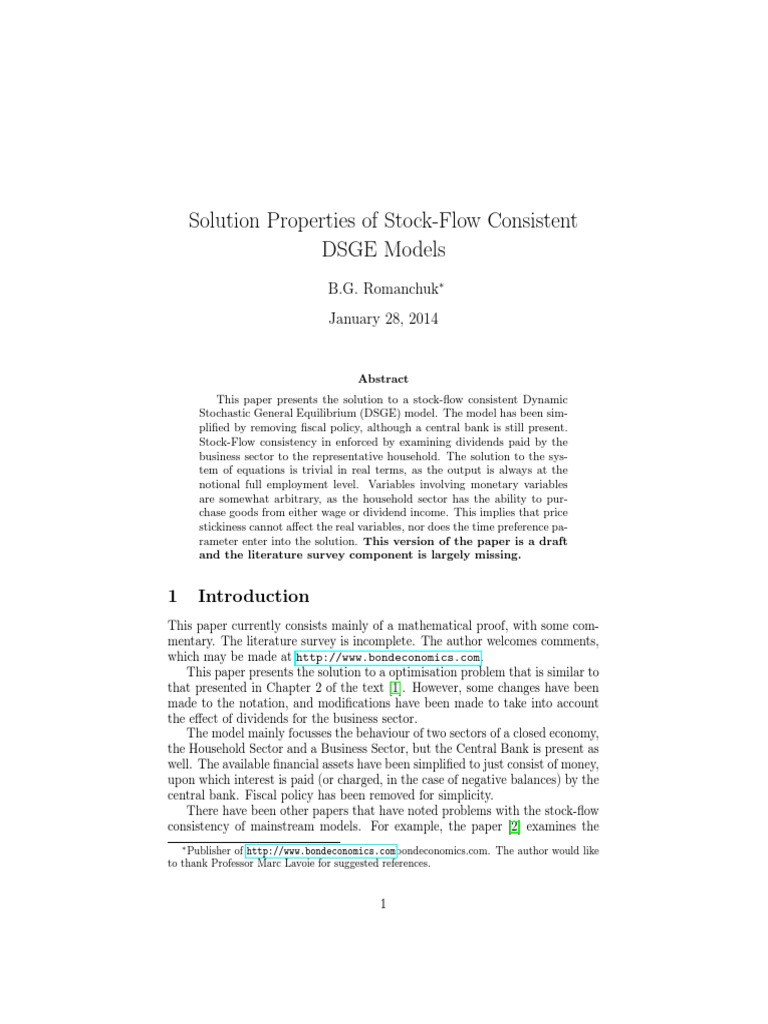 Draft proof which constructs a solution to a Dynamic Stochastic General Equilibrium which is Stock-Flow Consistent. The solution is trivial in real terms, highlighting the difficulty of the …