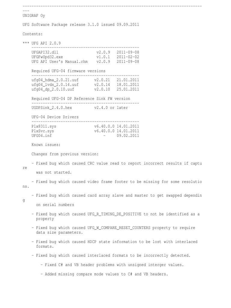 UFG Software Package release 3.1.0 issued 09.09.2011