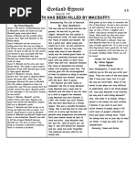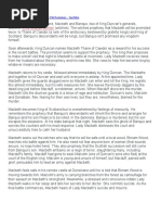 Captain Macdonwald came on strong, but the fearless Macbeth was stronger, with his brandished steel, which smoked with bloody execution. He unseemed Macdonwald from the nave to the chaps, and put his head on a stake at the top of the tower. Duncan Wow, what a story! Captain And just when we thought they had admitted defeat, a fresh assault began by the order of the Norweyan Lord. This was of course fought bravely by Macbeth and Banquo, who showed no mercy. Duncan Bring them here! I would like to congratulate them myself. (enter Rosse) Rosse A tough battle as been fought between us and the Norweyan soldiers. Both sides have lost many, and they were even assisted by the most disloyal traitor, the Thane of Cawdor. Im pleased to announce that victory fell upon us.