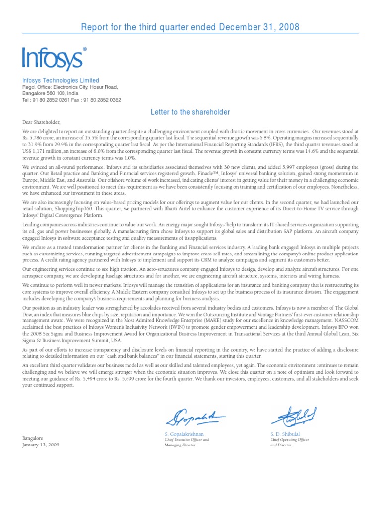 Infosys is concerned about the environment and utilizes natural resources in a sustainable way. To this end, we have sent the quarterly report via email to