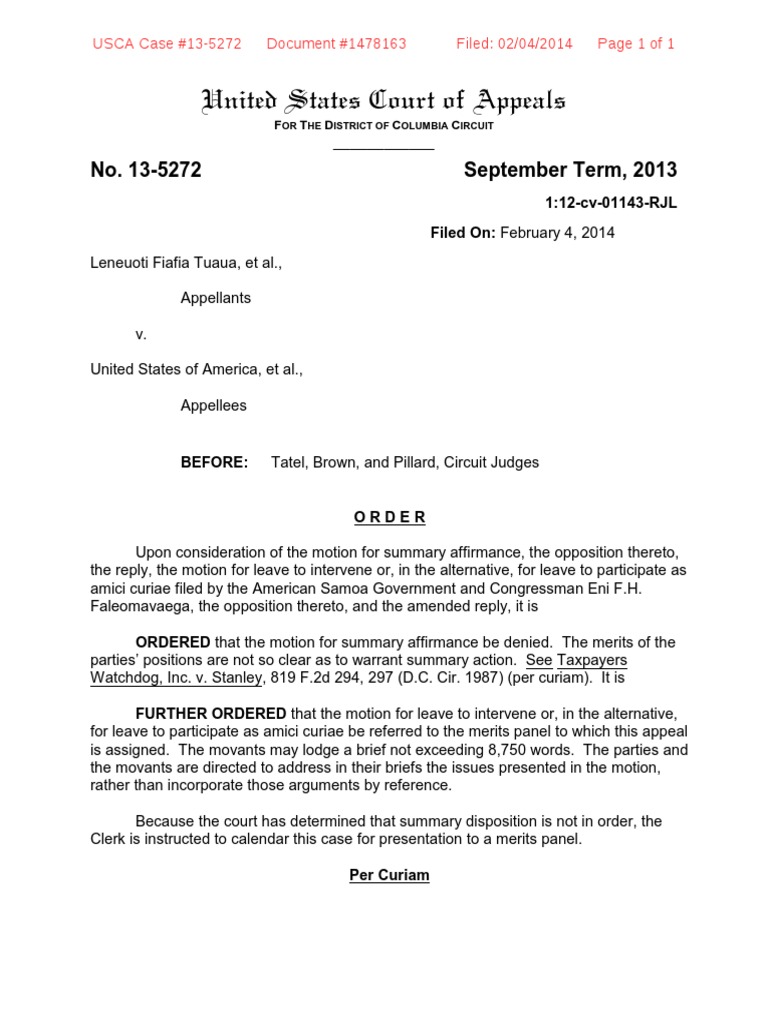 Tuaua v. United States is a federal lawsuit brought by Leneuoti Tuaua, the Samoan Federation of America, and others born in American Samoa who believe that so long as American Samoa is a par…