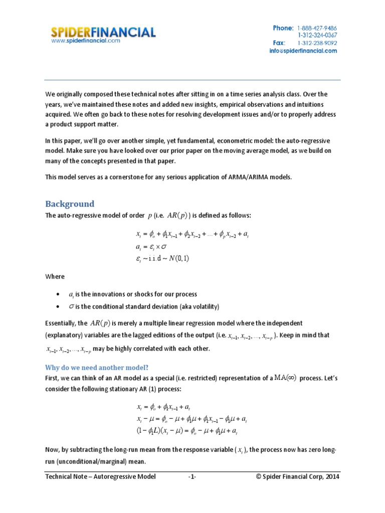 TechnicalNoteAutoregressiveModel 1 SpiderFinancialCorp,2014