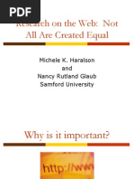 Figuring out whether a site is suitable for your purpose also means looking at how thoroughly it covers your topic. You can do that only relative to other sites on the same topic. Click for clues about thoroughness: 1. Click around the site to get some idea of how thoroughly it covers the topic. 2. Use this technique with Google to find other sites on the same topic: In the search box, enter: o related:[the URL of the site you know] (Ex: related:liblearn.osu.edu) o Then quickly browse multiple sites Google turns up and compare how they cover your topic with how the one you are evaluating covers it. Do other sites cover aspects of the topic that are missing from the site you are evaluating? Or does your site stack up pretty well against the competition?