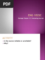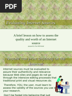 consciously as we have explained here. Evaluating sources will be a habit of mind - one of the most valuable to be learned at college. Example: Assume you're writing a term paper and are considering using information from Site XYZ. You ran through the evaluation process as you looked over the site and you made notes about the grades you assigned. The grades you gave individual factors are: