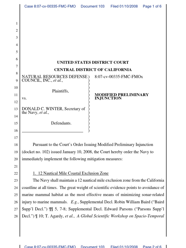 19 Accordingly, the Court orders the Navy to refrain from employing MFA sonar in the