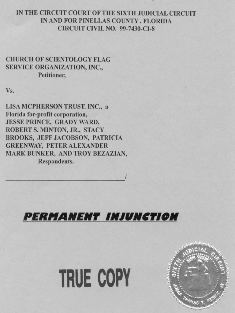 Permanent Injunction Against The Lisa McPherson Trust
