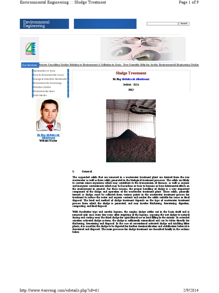 Environmental Engineering ::: Sludge Treatment