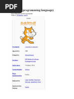 1. An Overview of Scratch Scratch programs are made up of sprites which can move about on a stage, play music, bounce off other sprites, and change their looks. A sprite is controlled by scripts built out of command blocks (blocks look a lot like jigsaw pieces) that can be snapped together in intuitive ways. The scripts act as independent threads of behavior at runtime, triggered by keyboard input, mouse movements, sprite clicking, external sensor activity, by broadcast messages, or due to changes in variables. Command blocks are divided into eight categories: motion, looks, sounds, pen, control, sensing, numbers, and variables. The 'looks' category allows a sprite to display speech bubbles, thought bubbles, change its size, apply visual effects to itself such as adjusting its brightness, and change its costume. The 'pen' category offers the sort of capabilities familiar from Logo. 'Control' includes blocks for constructing loops and if-statements, and also event-based triggers. 'Sensing' offers blocks for monitoring the mouse, the keyboard, collision detection based on color and proximity, and the reading of sensors on a Picoboard (an external hardware board). Variables are untyped, and treated as strings or numbers (similar to Java doubles). Variables may be local to a sprite, or be global to the application. The only data structure is the list. Scratch was developed by the Lifelong Kindergarten Group at the MIT Media Lab, and so there's lots of support for teachers and children at the Scratch website (http://scratch.mit.edu). There are several forums (http://scratch.mit.edu/forums/), and a thriving project collection where people can uploading their work. Aside from the MIT website, other useful Scratch resources are http://resources.scratchr.org/pages/, http://cegsa.editme.com/ScratchSqueakEtoysResources, and the Scratch projects at Nebo Elementary School (http://nebomusic.net/scratch.html). Scratch isn't a full-blown programming language for building air traffic control system and nuclear power plant software. It's a first language, deliberately lacking many features, such as arrays, procedures and functions, recursion, parameter passing and return values for scripts, file IO, classes, and inheritance. Behind the scenes, Scratch is implemented using Squeak (http://www.squeak.org/), a variant of Smalltalk-80, which makes it fairly easy to extend the system. One interesting off-shoot is BYOB by Jens Mnig (http://www.chirp.scratchr.org/blog/?p=19) which addresses many of Scratch's shortcomings. BYOB supports the definition of new command blocks for procedures and functions, parameter passing to blocks, and recursion. 1.1. Remote Sensor Connections Scratch v.1.3. added an experimental feature called remote sensor connections based on sending and receiving messages via a TCP socket. This makes it possible for Scratch to communicate with other languages, software, or hardware with network capabilities. The socket mechanism is hidden at the programmer level instead scripts broadcast messages and utilize externally visible global variables. The details were first explained in a forum post at http://scratch.mit.edu/forums/viewtopic.php?id=9458, which includes code snippets in Python and Processing. A first draft of the networking protocol was also posted to that forum thread. Subsequently, the Scratch Connections website
