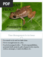 Do you try to do most of the important tasks during your prime time? (the time you are most productive during the day) Do you set priorities according to importance but not urgency? Do you make constructive use of commuting time (assuming you can)? Do you concentrate on objectives instead of procedures, judging yourself by accomplishments instead of activity? Do you delegate as much work as possible? Do you delegate challenging jobs as well as routine one? Do you delegate authority along with responsibility Do you effectively use the aid of other staff to get better control of your time? Have you taken steps to prevent unneeded information and papers from reaching your desk and intruding on your time? In meetings, do you try to crystallize what the issues are and summarize the decisions made and responsibilities assigned? Do you try to handle matters by phone or in person whenever you have a choice, using written communications (and e-mail) only when clearly needed? Do you force yourself to make minor decisions quickly? Do you set deadlines for yourself and others? Do you make yourself take time to plan? Periodically use a time log? Are you really in control of your time? Do you usually decide your actions, rather than having circumstances or others decide?