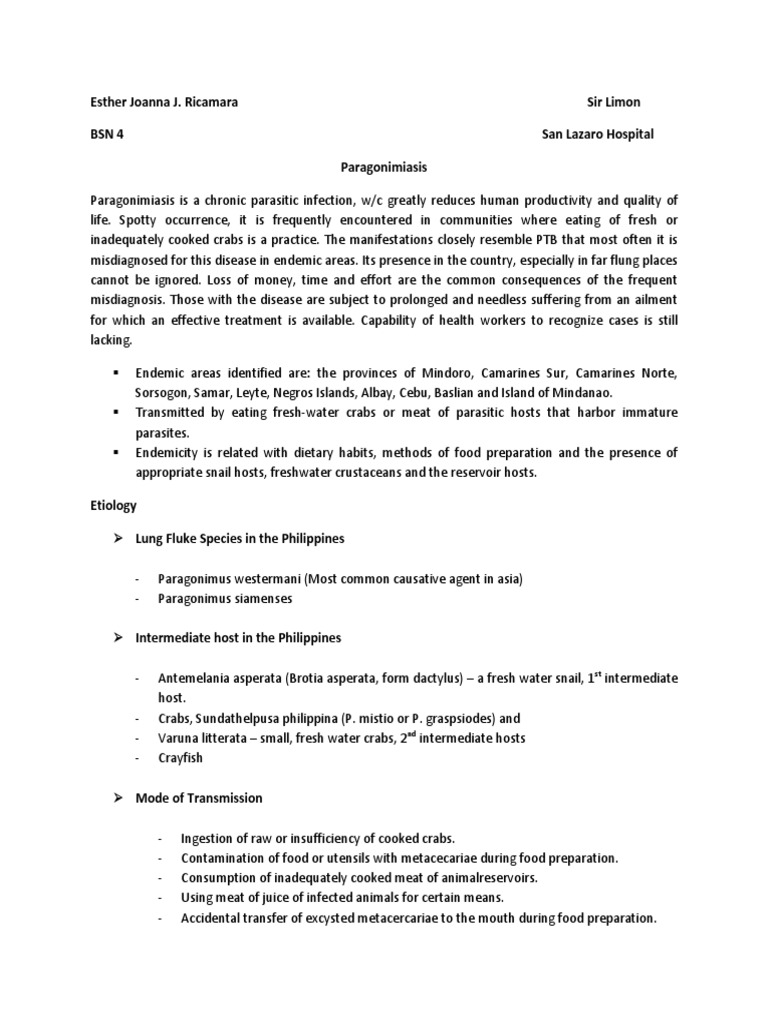 Ricamara BSN 4 Paragonimiasis