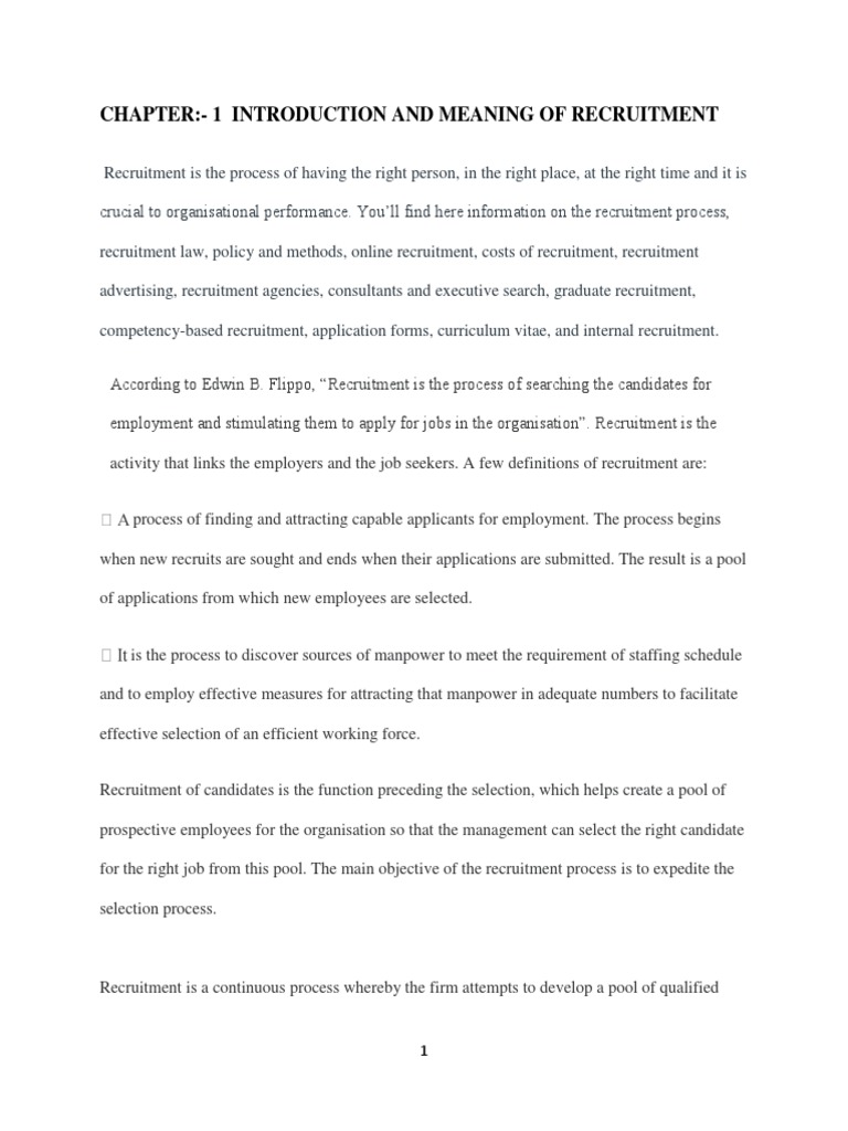 CHAPTER:- 1 INTRODUCTION AND MEANING OF RECRUITMENT