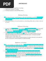 c. An objective enquiry d. None of the above 5. Society is a consciousness of the kinds is the definition of a. Giddings b. Aristotle c. Plato d. Davis 6. Sociology is purely social physics who said so? a. Spencer b. MacIver c. Max Weber d. Auguste Comte 7. Social relationships in society involves a. Presence of institution b. Complication of social and political problems c. Consciousness of existence of other individual 8. Where there is life, there is society. Who said this a. Auguste Comte b. Herbert Spencer c. MacIver and Page d. Confucious 9. Sociologist are primarily interested in a. Anything which is related in a casual way to the behaviour of man b. The way in which human beings mutually influence each other c. The individual since he is convinced that there is really no such things as groups d. The similarities between human behaviour and behaviour of their animals 10. What does society exclude a. Differences b. Inter-dependence c. Reciprocity d. Time bound ness