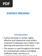 1. Two types of coating: Prime coat liquid bitumen, sprayed onto clean unbound roadbase using pressure distributor at the rate of 0.5 1 liter/m2 MC-70 (50C -70C), SS-1K (25C - 45C) cured for 24 hours to achieve maximum penetration Tack coat bitumen emulsion, sprayed onto bituminous layer, rate 0.25 0.55 liter/m2 RS-1K, 25C - 45C Carried out in dry, warm weather and dry surface, prevent spattering adjacent trees, furniture etc, not to be discharged into drains, gutter, keep traffic off Equipment power broom, compressed air blower, pressure distributor