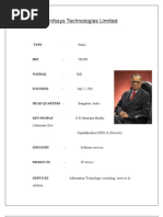 Infosys Technologies Ltd (Infosys) was incorporated in 1981 as Infosys Consultants Pvt Ltd. The company went public in India in 1993 and in 1999, it got listed on NASDAQ. In 2002, the company forayed into the business process management space through its subsidiary, Infosys BPO Ltd. Since its inception, Infosys has expanded its operations in various countries like the US, UK, Canada, Germany, Sweden, Belgium, Australia, France, Hong Kong, UAE, Japan and several others. The company currently has a presence in 61 major cities across 25 countries. Infosys uses a low-risk Global Delivery Model (GDM) to speed-up schedules with a degree of time and cost predictability. Architecture Services Infosys' Architecture Services enable enterprises to eliminate business alternatives. Infosys partners with clients to develop Enterprise Architecture (EA) solutions that translate their corporate strategy into an effective IT strategy. Independent Validation Services (IVS) Infosys' IVS test every transaction from different angle to deliver quality services. The system provides cost efciencies and ensures reliability, availability and stability of applications. Information Management Service (IMS) Infosys' IMS enables organisations to derive insights from information, leading to informed decision-making, regulatory compliance and business effectiveness. Infrastructure Service Infosys provides end-to-end Infrastructure Management Services. The companys GDM caters to the entire spectrum of its clients infrastructure support requirements. Packaged Application Services Infosys IT infrastructure package implementation services help clients to automate their value chain through off the shelf application packages to achieve business benets. Systems Integration Services Infosys Systems Integration services ensure business IT alignment, return on existing investments, and focus on cost and revenue management. Engineering Services Product Engineering Infosys provides product engineering services, which combined with