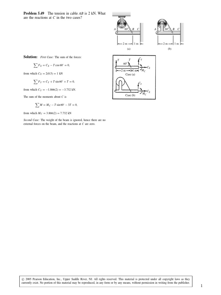 from which MC D 3.866 2 D 7.732 kN Second Case: The weight of the beam is ignored, hence there are no external forces on the beam, and the reactions at C are zero.