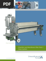 Filterpress with membrane plates: Slurry is pumped and fills the chambers at a high flow rate and low pressure which gradually builds-up as the cake gets thicker. The drip trays are closed. The membranes, of empty chamber type plates, are pressed back to allow cake formation. When pressure reaches 6-7 bars the cake is presqueezed for even distribution by pumping water to the backside of the membranes. Wash water is pumped through the filter cake at a predetermined wash ratio to displace the adhering mother solution. Air blowing is applied to reduce cake moisture. More water is pumped to the backside of the membranes for final squeezing up to 15 bar to further reduce moisture. The wet core that remains in the feed port is blown back with air at 6-7 bars for 20-30 seconds to ensure that the discharged cake is completely dry. The drip trays open and are ready for cake discharge. The hydraulic plate closing piston retracts together with the follower. The shuttle shifter moves the plates one by one towards the follower and the cake discharges. The drip trays close and are ready for the next cycle. The shuttle shifter moves the plates back one by one towards the fixed header. When each plate parks the cloth is washed at 100 bar with a mechanism that lowers and lifts a pair of symmetrical manifolds with high impact nozzles. Cake Disposal During cake squeezing drippings are collected in a drip tray underneath the plate stack to avoid them from reaching the dry cake collection bin. The drip tray consists of two hinged horizontal doors that span along the filterpress with a slight angle to drain the drippings towards the head or the follower. When the filtration cycle is completed the doors open with a pneumatic or hydraulic system, the plate stack starts shuttle shifting and the cake falls one by one into the bin. When all the cake is in the bin the doors close and are ready for another cycle.