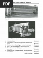The head serves as a fixed end to which the feed and filtrate pipes are connected and the follower moves along the beams and presses the plates together during the filtration cycle by a hydraulic or mechanical mechanism. The plates have generally a centered feed port that passes through the entire length of the filterpress so that all the chambers of the plate pack are connected together. Likewise, four corner ports connect all the plates and collect the mother and wash filtrates in a "closed discharge" towards outlets that are located on the same side as the feed inlet. Some filterpresses have plates that are fitted with cocks at their lower side so that the filtrate flows in an "open discharge" to a trough and serve as "tell tales" on the condition of the filter cloth by the clarity of the filtrate that passes through each chamber. The disadvantage of this arrangement is that it cannot be used with filtrates that are toxic, flammable or volatile. A typical flowscheme looks like this: The present day Filterpresses, as mentioned previously, are equipped with features that enable fully automatic operation controlled by PLC's. The main features are: Shuttle shifters that separate the plates one by one for cake discharge at a rate of 5-6 seconds per plate. A special design of the shifting mechanism ensures that two adjacent plates are not pulled together due to sticky cakes as may be seen below: Shakers that subject the plate to vibrations and assist in discharging the cake. Cloth showers with movable manifolds and high impact jets for intensive cloth washing. Precoating and Body-Aid Often special measures are taken to ease cake discharge and enhance filtration. The measures are: Precoating Addition of Body Aid