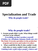 9. Refer to Table 3-1. The Farmer and Rancher both could benefit by the Farmer specializing in a. meat and the Rancher specializing in potatoes. b. potatoes and the Rancher specializing in meat. c. neither good and the Rancher specializing in both goods. d. They cannot benefit by specialization and trade. ANS: B Figure 3-1 DIF: Average REF: 53