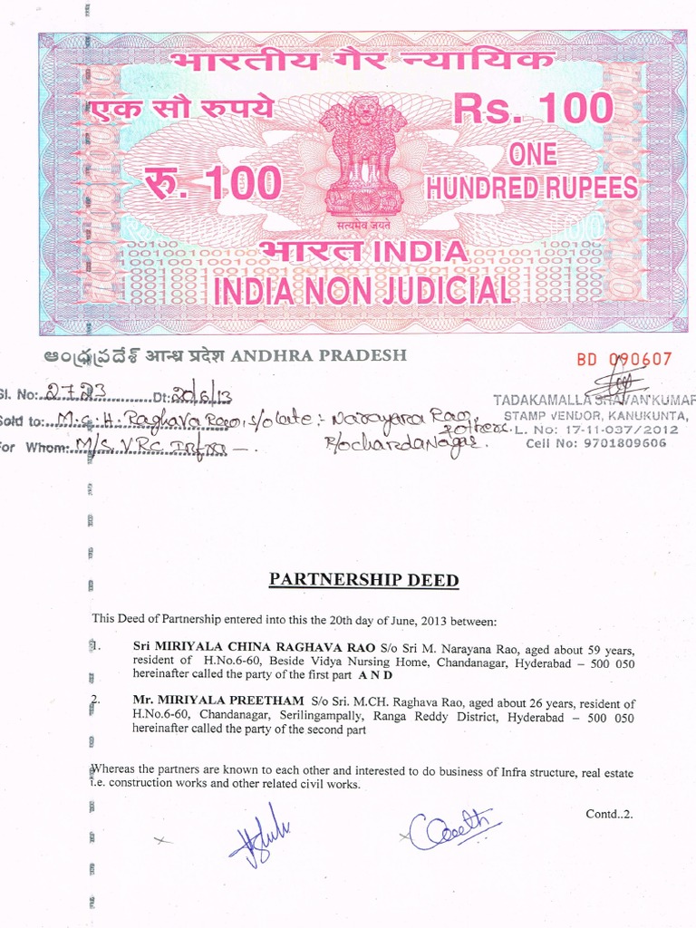 Partnership Deed and Stamp Details
