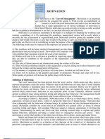 Mc!lellan$,s Ac+ievement Nee$ T+eor' "ccording to [Link] there are three types of needs3 Nee$ for Ac+ievement This need is the strongest and lasting motivating factor. 7articularly in case of persons who satisfy the other needs. They are constantly pre occupied with a desire for improvement and lack for situation in which successful outcomes are directly correlated with their efforts. They set more difficult but achievable goals for themselves because success with easily achievable goals hardly provides a sense of achievement. Nee$ for &o)er It is the desire to control the behavior of the other people and to manipulate the surroundings. 7ower motivations positive applications results in domestic leadership style, while it negative application tends autocratic style. Nee$ for affiliation It is the related to social needs and creates friendship. This results in formation of informal groups or social circle. Be+avioral Mo$ification T+eor' "ccording to this theory people behavior is the outcome of favorable and unfavorable past circumstances. This theory is based on learning theory. Skinner conducted his researches among rats and school children. 6e found that stimulus for desirable behavior could be strengthened by rewarding it at the earliest. In the industrial situation, this relevance of this theory may be found in the installation of financial and non financial incentives.